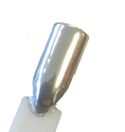 Brought in by customer request. Customers are applying it on top of a tacky gel nail polish finish, and brushing it down until they get a chrome, mirror-like finish.