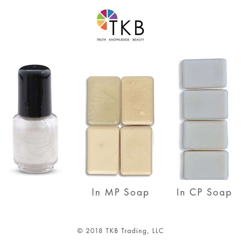 A shimmery pearly white color.