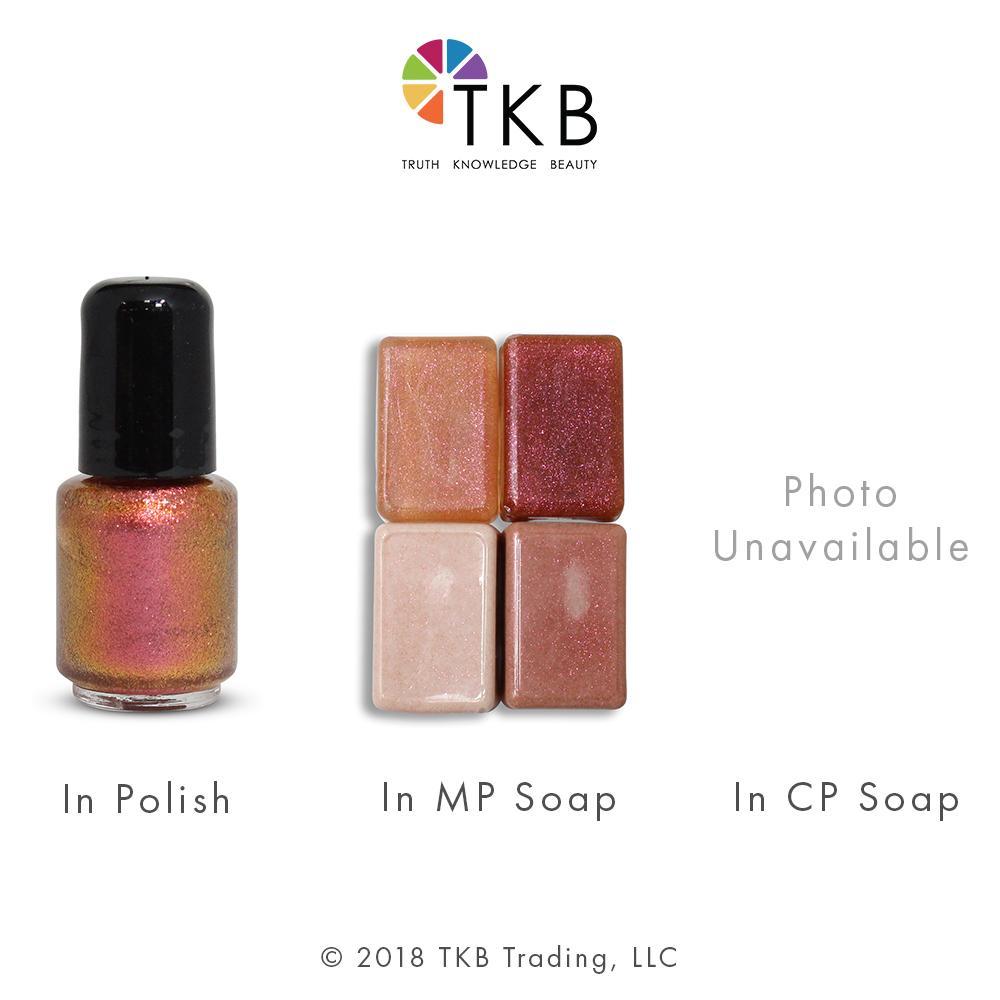 Super sparkly duochrome from pink to pale tangerine and several things between.