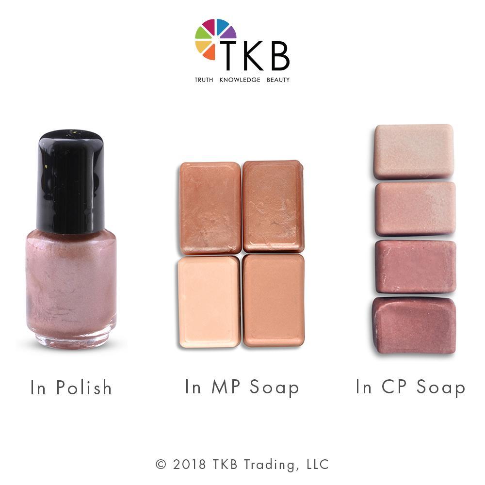 Reflection is a light brown appearing powder which rubs on to a metallic pink gleam. It is the Warmer half of our Metalites Duo.