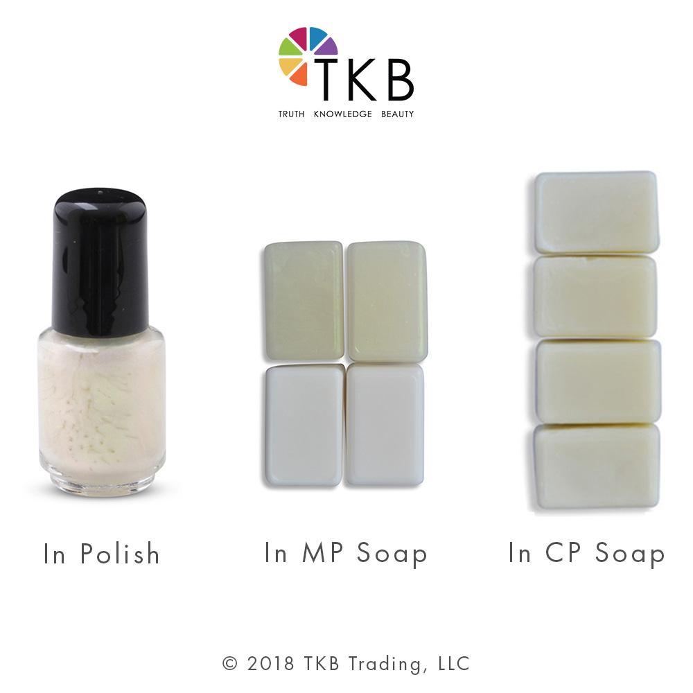 Travel To Earth is a mica coated with titanium dioxide (a whitener), Silica, and Tin Oxide. Looking at it in the bag, it appears to be a white powder.